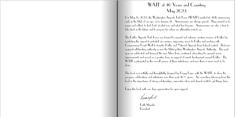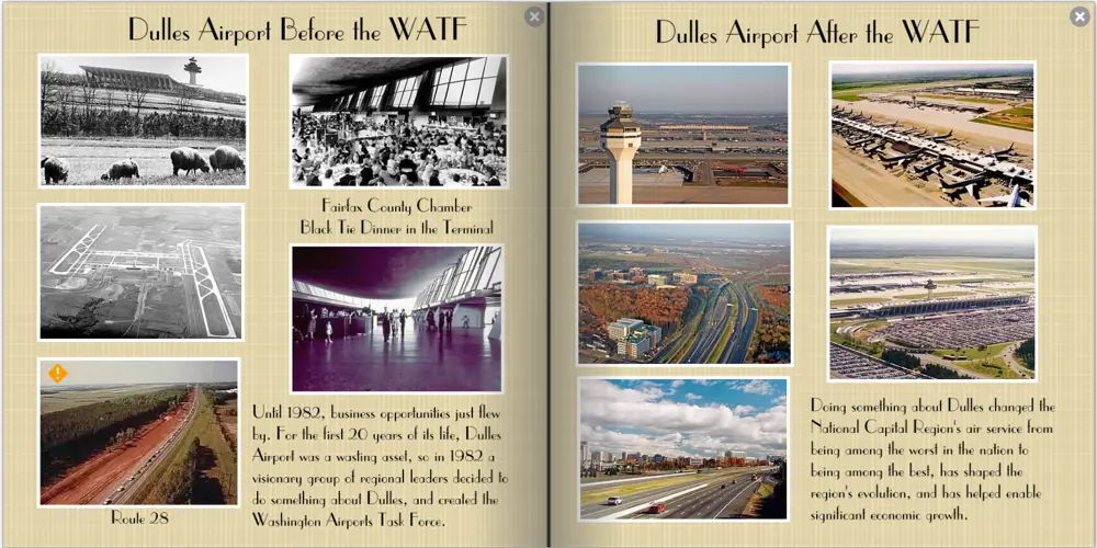 A visionary group of regional leaders decided to “do something about Dulles Airport,” which was then viewed as a wasted asset. Years later, improved air service has helped the National Capital region achieve one of the highest levels of prosperity in the nation. Washington Dulles now is one of the top 10 gateways to the nation, and the global reach created has helped make Washington America’s largest technology center.Today, that visionary group is known as the Washington Airports Task Force (WATF), a nonprofit, non-partisan, 501(c)(3) Virginia corporation that works to promote the expansion and enhancement of aviation services for Virginia and the National Capital region in order to stimulate job creation. “Doing something about Dulles” changed Washington’s air service from being among the worst in the nation to being among the best and enabled significant regional economic development.